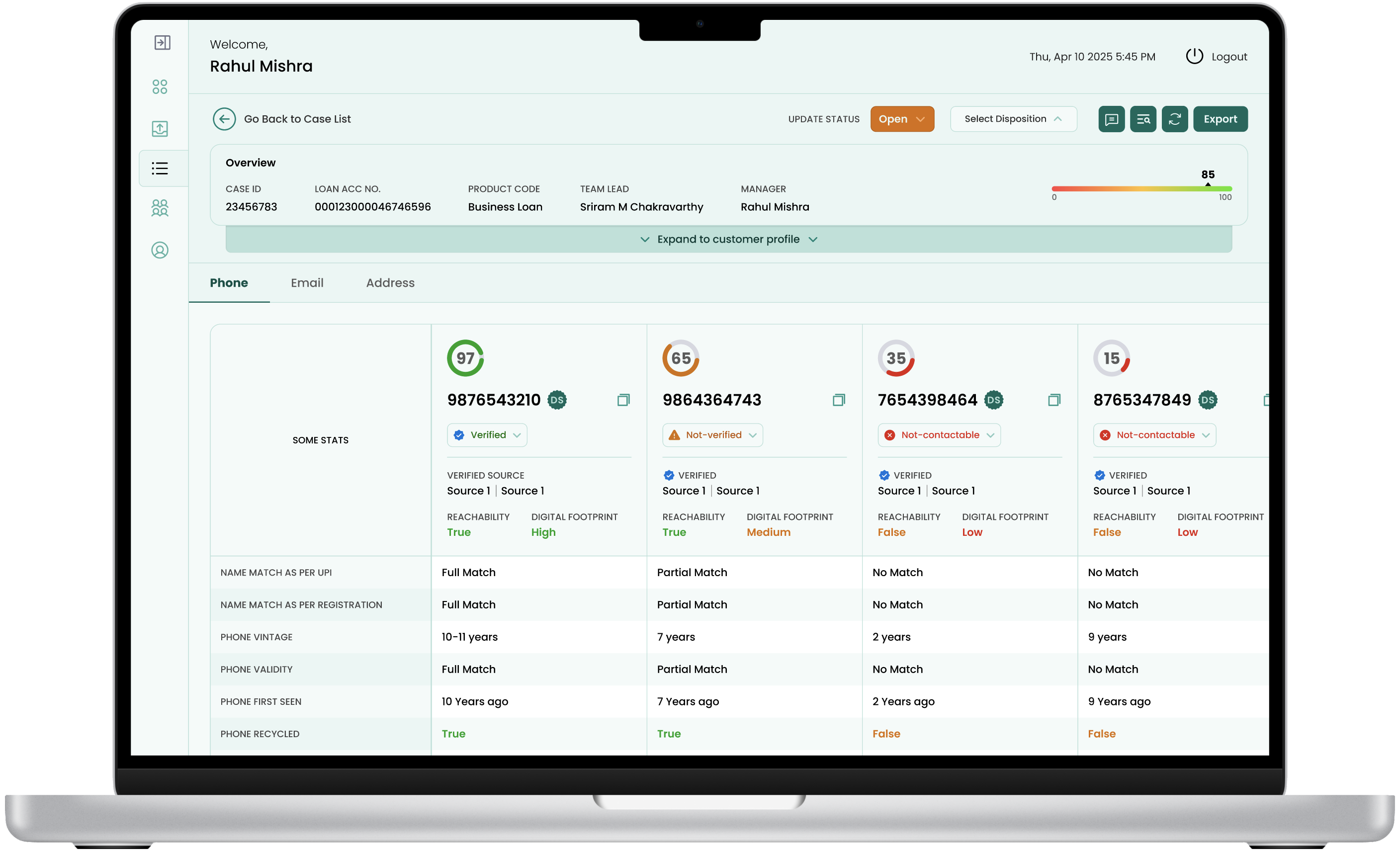 Assess contactability risk in existing portfolio